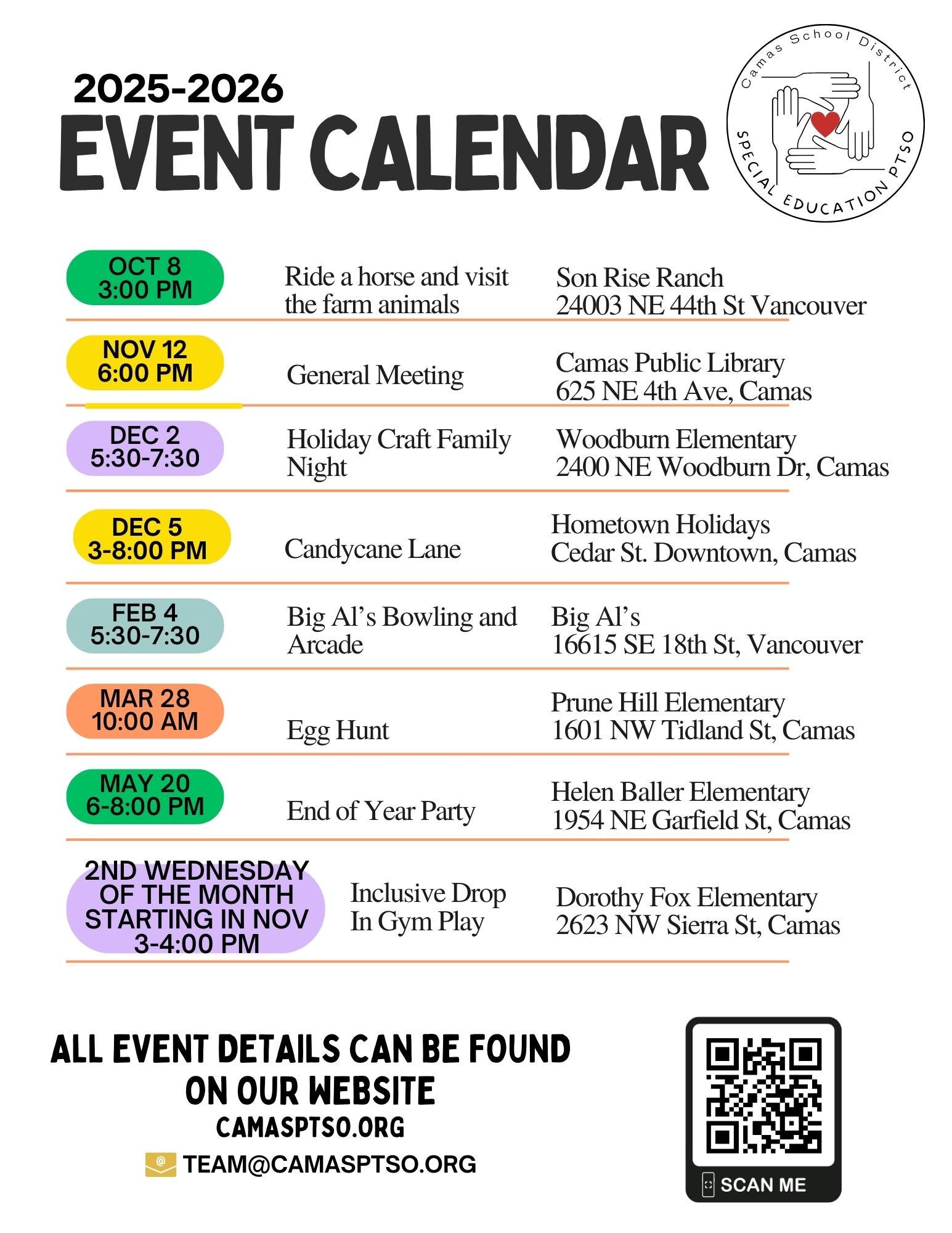 As 2025 approaches its end we feel it’s important to look back at the busy year it’s been. With so many returning families and new faces, we have been grateful to meet and get to know you this year and we look forward to what’s next. To all the families that have participated in our events and joined our group, thank you! We really appreciate you making us part of your journey. To all the individuals who have stepped up to volunteer and donate, thank you! We really appreciate your time and generosity, we couldn’t do what we do without you. To my fellow members of the PTSO thank you for all your hard work and dedication to make Camas a community families want to be a part of.