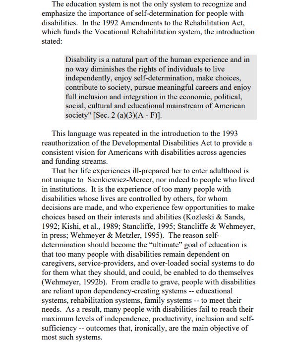 Below is an excerpt from The Arc self determination scale about the importance of self determination.